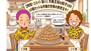 大阪王将の餃子が50%増量&タレ500%増量で登場!100個入りの大容量セットは、タイパ重視の共働き世帯に選ばれています。おばちゃんコンビの「いく美とくる実」が、お店の味を自宅で再現するコツを楽しく解説。毎日の食事作りが楽になる秘訣が満載です。