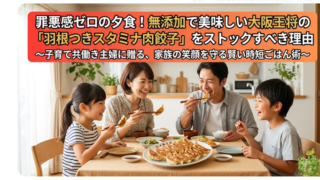 仕事帰りの夕食作りを劇的にラクにする方法とは?無添加で美味しい大阪王将の「羽根つきスタミナ肉餃子」を徹底レビュー。時短なのに手抜きに見えない本格的な仕上がりで、家族との団らん時間を生み出します。忙しい主婦が今すぐ冷凍庫に備えるべき理由とは。