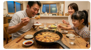 • 週末の晩酌タイム: 焼き立て熱々の餃子を真ん中に置いて、冷えたビールで乾杯。外食気分を味わいながら、家族の会話も弾みます。