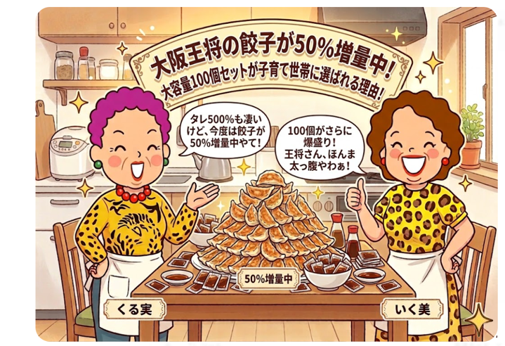 そんな豊かな食卓と休息を、ぜひあなたも大阪王将の餃子と共に手に入れてみてください。