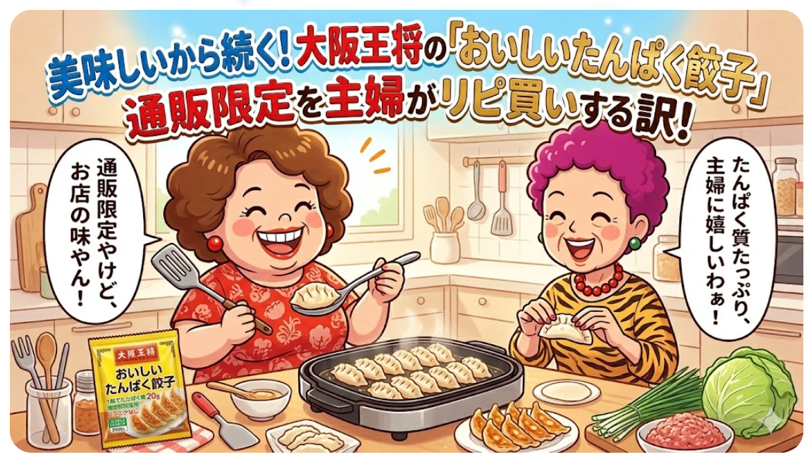 仕事に育児に、毎日フル回転の共働き主婦の皆さん、今日も本当にお疲れ様です!夕食の献立を考える気力すら残っていない……そんな限界の夜に手を差し伸べてくれる「救世主」をご存知ですか?今回は、餃子をこよなく愛する大阪の主婦コンビ、いく美ちゃんとくる実ちゃんが、大阪王将の公式通販限定「おいしいたんぱく餃子」を賑やかな掛け合いでご紹介します!「時短・栄養・旨い」の三拍子が揃ったこの餃子が、なぜ忙しい私たちの心と体を救ってくれるのか?プロテイン補給の新常識から、冷凍庫にストックしておくべき驚きのメリットまで、浪速の主婦目線で本音全開のレポートをお届けします。さあ、今すぐチェックして夕食作りの悩みとおさらばしましょうね!