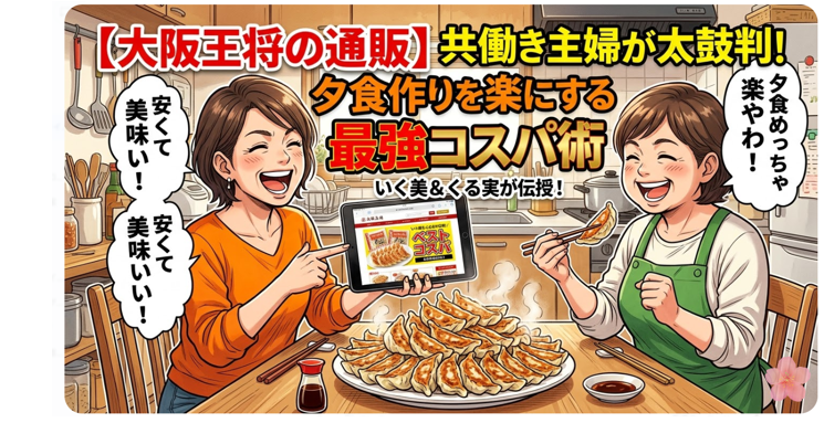 世の奥様方、毎日仕事に育児に本当にお疲れ様です。帰宅後のキッチンで「もう一歩も動けない…」と献立を前に立ち尽くす夜、絶対ありますよね。そんな共働き世帯の救世主が、実は大阪王将の通販サイトなんですよ。圧倒的なコスパ時短を叶えるその魅力は、もはや忙しい主婦の必須スキル!この記事では、大阪のリアルな主婦代表として、元気いっぱいの「いく美ちゃん」と、節約とお得に敏感な「くる実ちゃん」の二人が、賑やかな掛け合い形式でその活用術を余すところなくご紹介しますからね。笑いあり、お得情報ありのトークを読み進めるうちに、あなたの冷凍庫も「お店の味」で満たしたくなるはず。さあ、あなたも今夜から夕食作りを劇的に楽にする最強のコスパ術、一緒にチェックしていきましょう!