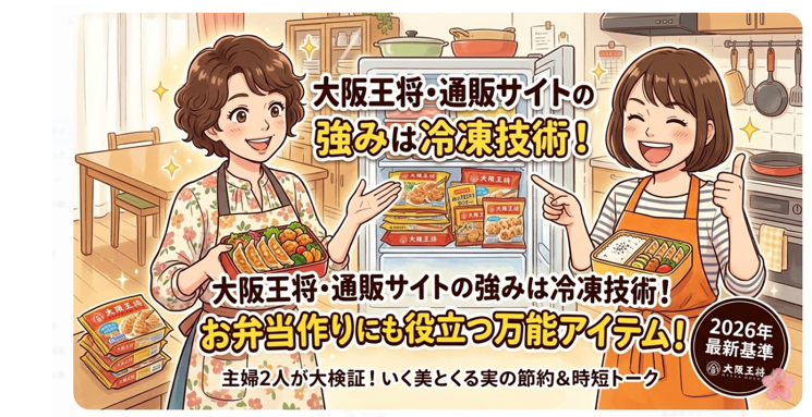 朝のキッチンは、まさに戦場!「お弁当のおかず、あと一品足りひん!」「冷めたら美味しくないって言われた…」そんなお悩みを抱える全ママ・パパの救世主が、実は大阪王将の通販サイトに隠されていたんですよ。秘訣は、2026年最新の「冷凍技術」にあり!お店のクオリティを瞬時に閉じ込めるからこそ、お弁当でも「お店の味」がそのまま楽しめるんです。本記事では、時短と節約の達人・いく美ちゃんと、絶賛お弁当作り格闘中のくる実ちゃんが、賑やかな掛け合いでその裏技を大公開!「レンジでチン」の先を行く、保冷剤代わりの活用法や秒速アレンジ術まで、明日からのお弁当作りが劇的に楽になってしまう、そして豪華に変わるヒントを満載でお届けします!